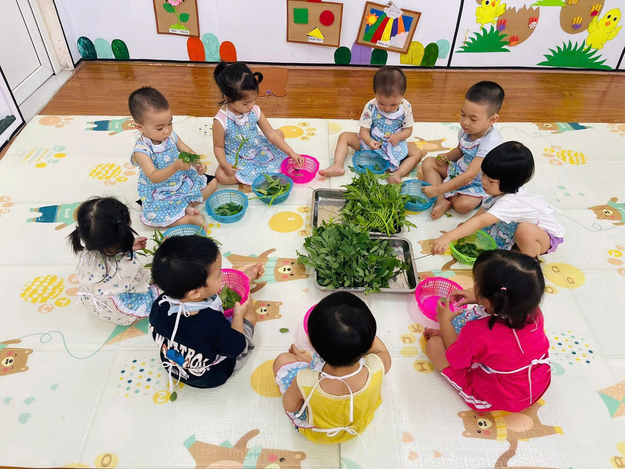 🌿 Hôm nay các bạn nhỏ lớp Nhà trẻ A2 và lớp 3 tuổi A1 đã cùng nhặt rau giúp các bác cấp dưỡng đấy ạ! 🥬✨