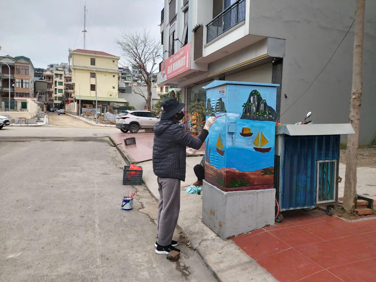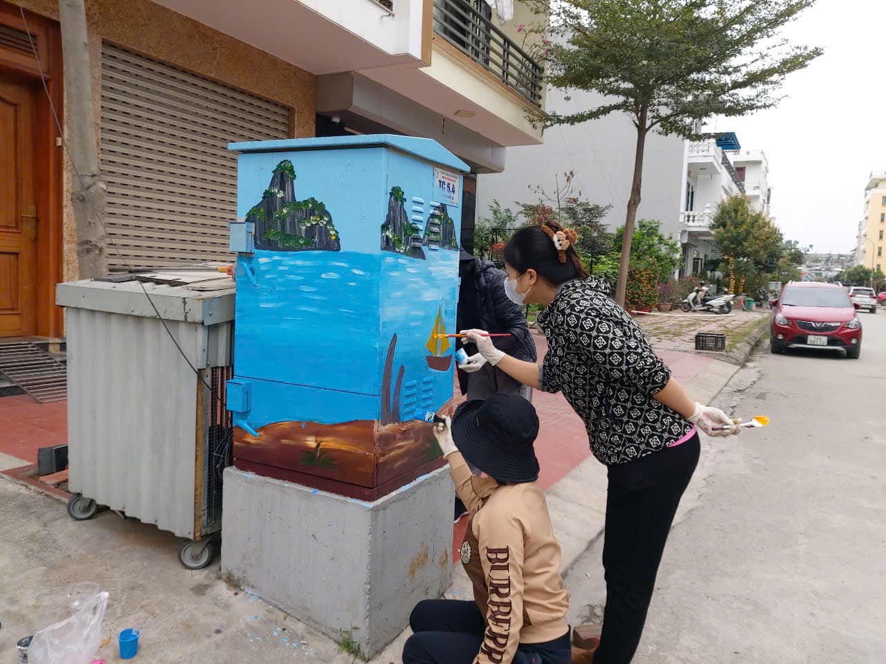 Chi đoàn trường mầm non Cao Thắng phối hợp với đoàn thanh niên Phường tham gia công trình “ Vẽ tranh tủ điện”.