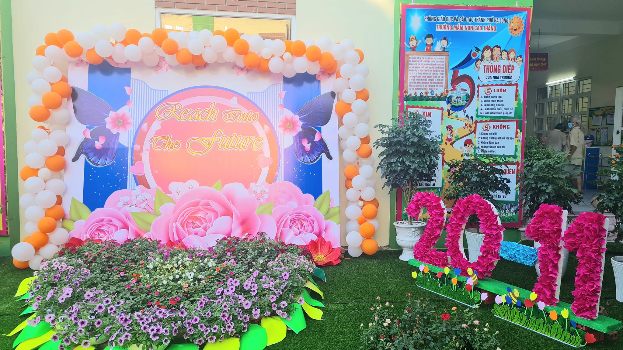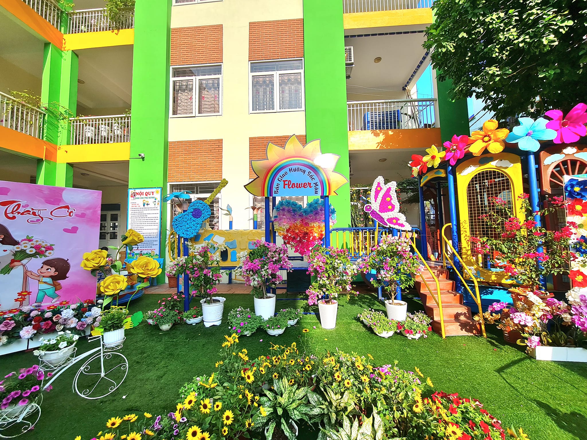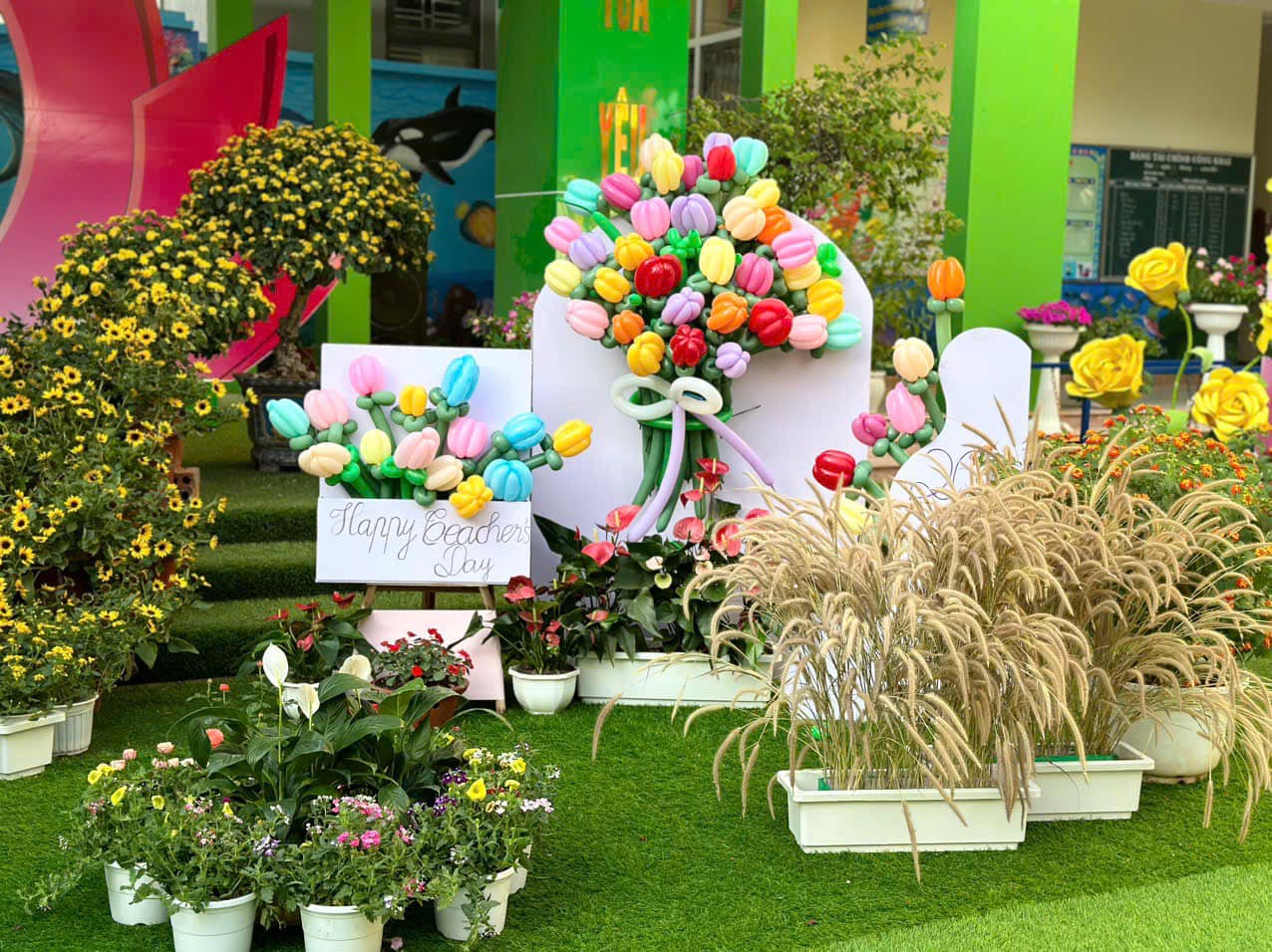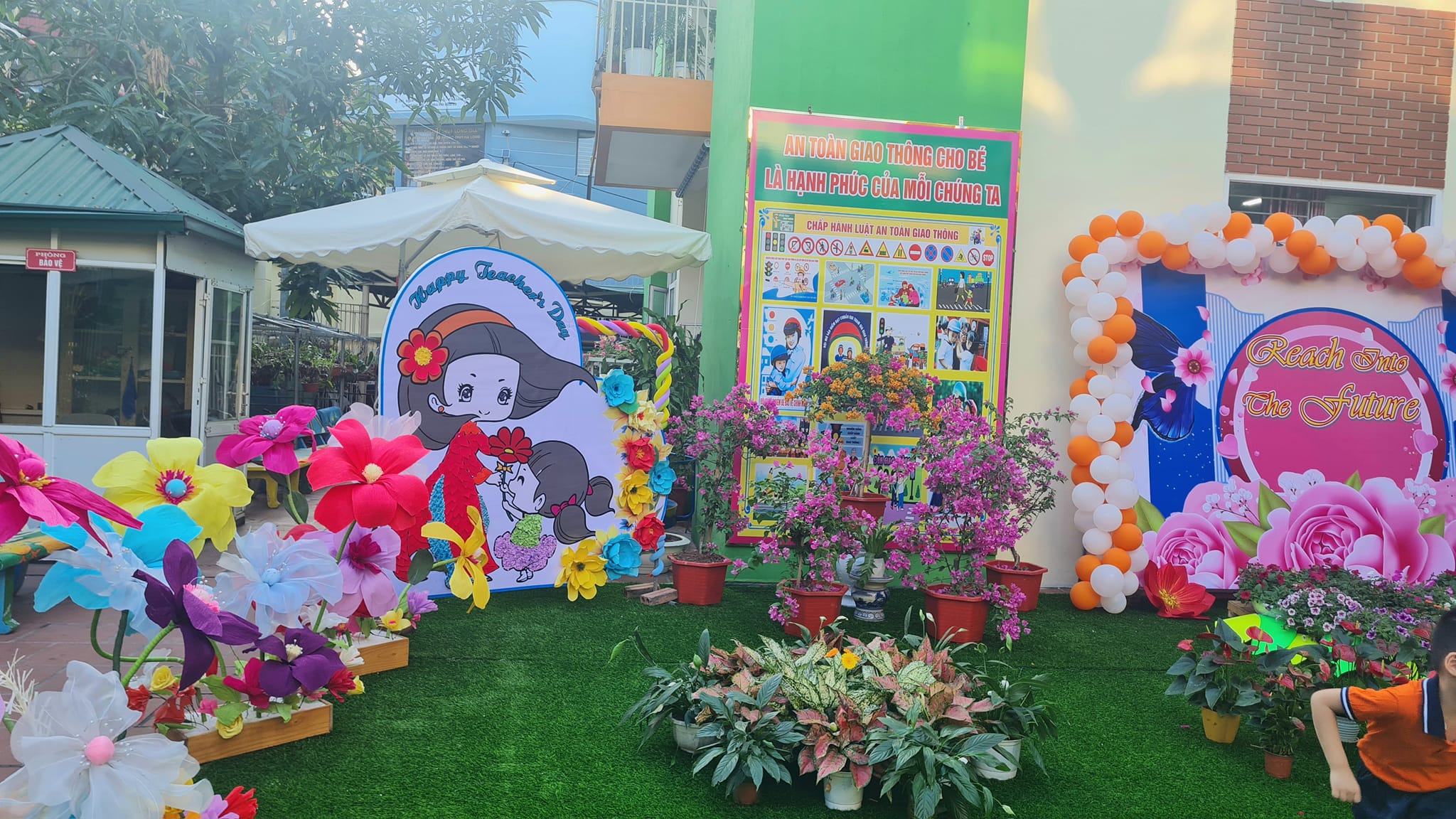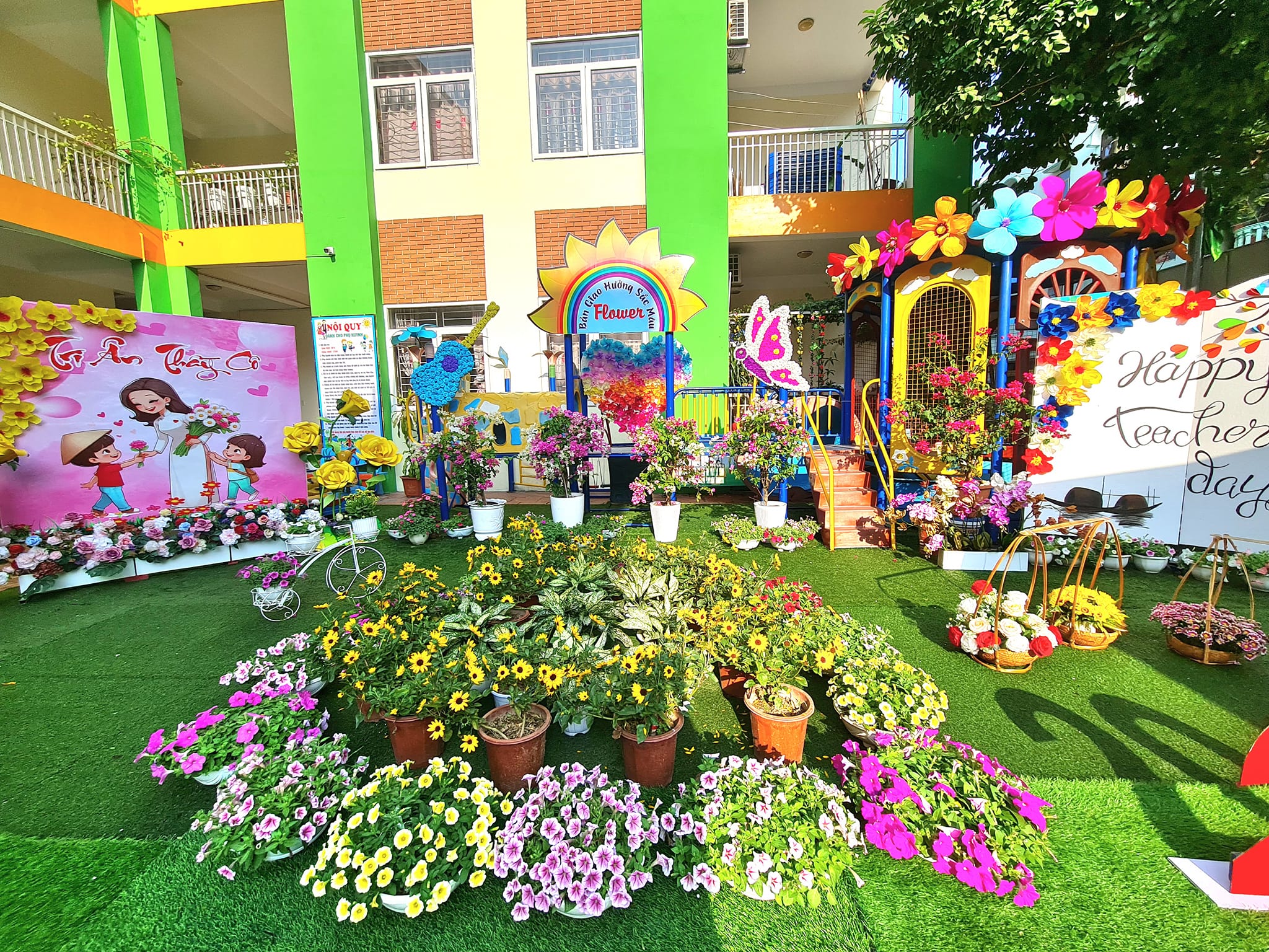 Các đội chơi lên ý tưởng, tạo không gian, sắc màu rực rỡ sắc hoa để chào đón, tri ân các thế hệ nhà giáo.